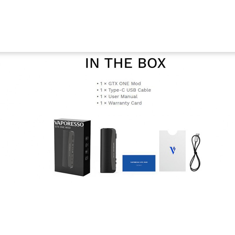 The popular GTX One Mod from Vaporesso offers up to 40 watts of power and a built in 2000mAh battery for longer vape times between charging. Charging is also faster and more reliable due to the 2A USB Type-C charge cable (included). This device supports coils between 0.15ohm and 5ohm for wide compatibility. Best paired with the Vaporesso GTX 18 tank, the standard 510 thread will accept many different brands and styles of tanks.