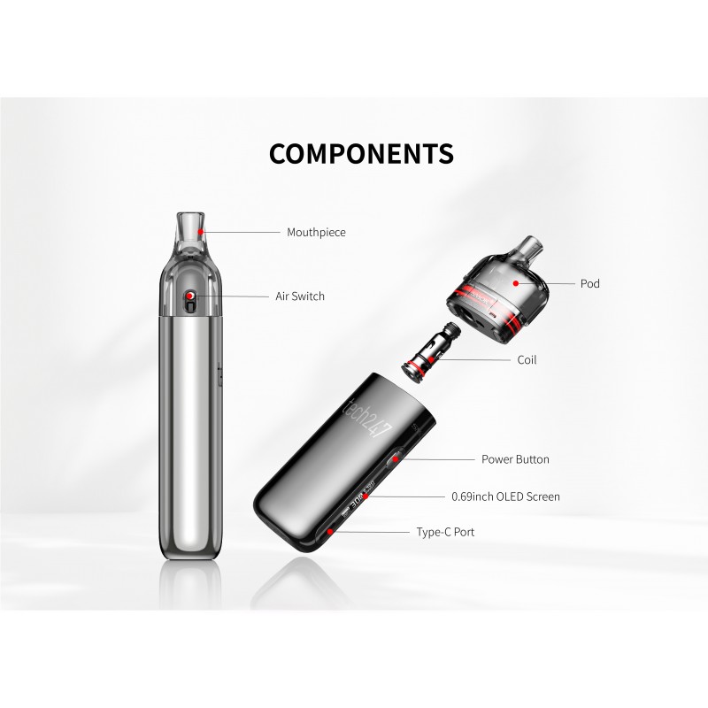 The SMOK tech247 Pod kit has a built in 1800mAh battery and a 4ml capacity pod with an easy top fill design and adjustable top airflow control. Compatible with the SMOK M-Coil series. Adjustable between 5w - 30w.
